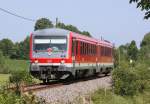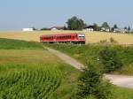 Der 628 559 als S Bahn nach Dachau am 20.07.2013 bei der Einfahrt in Schwabhausen.