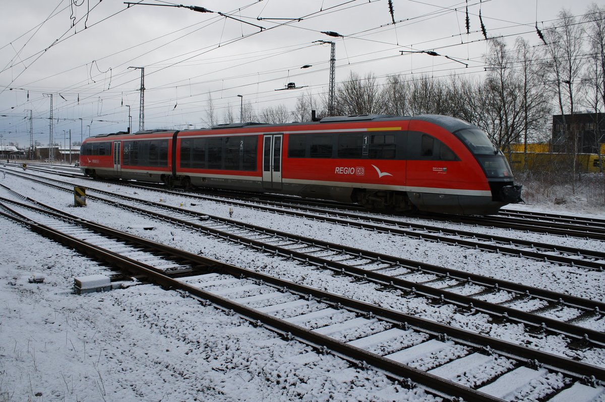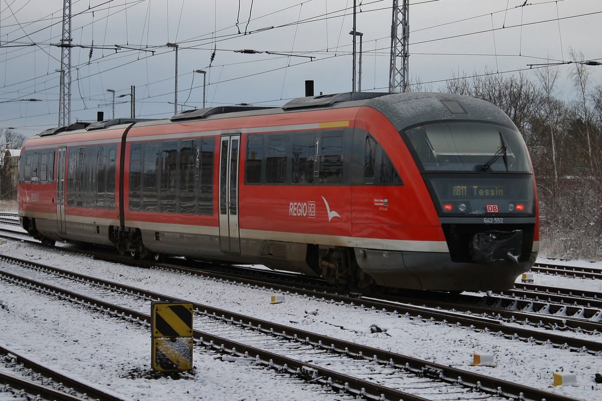 642 552-3 fährt am 3.2.2018 als RB11 (RB13115) von Wismar nach Tessin aus dem Rostocker Hauptbahnhof aus.