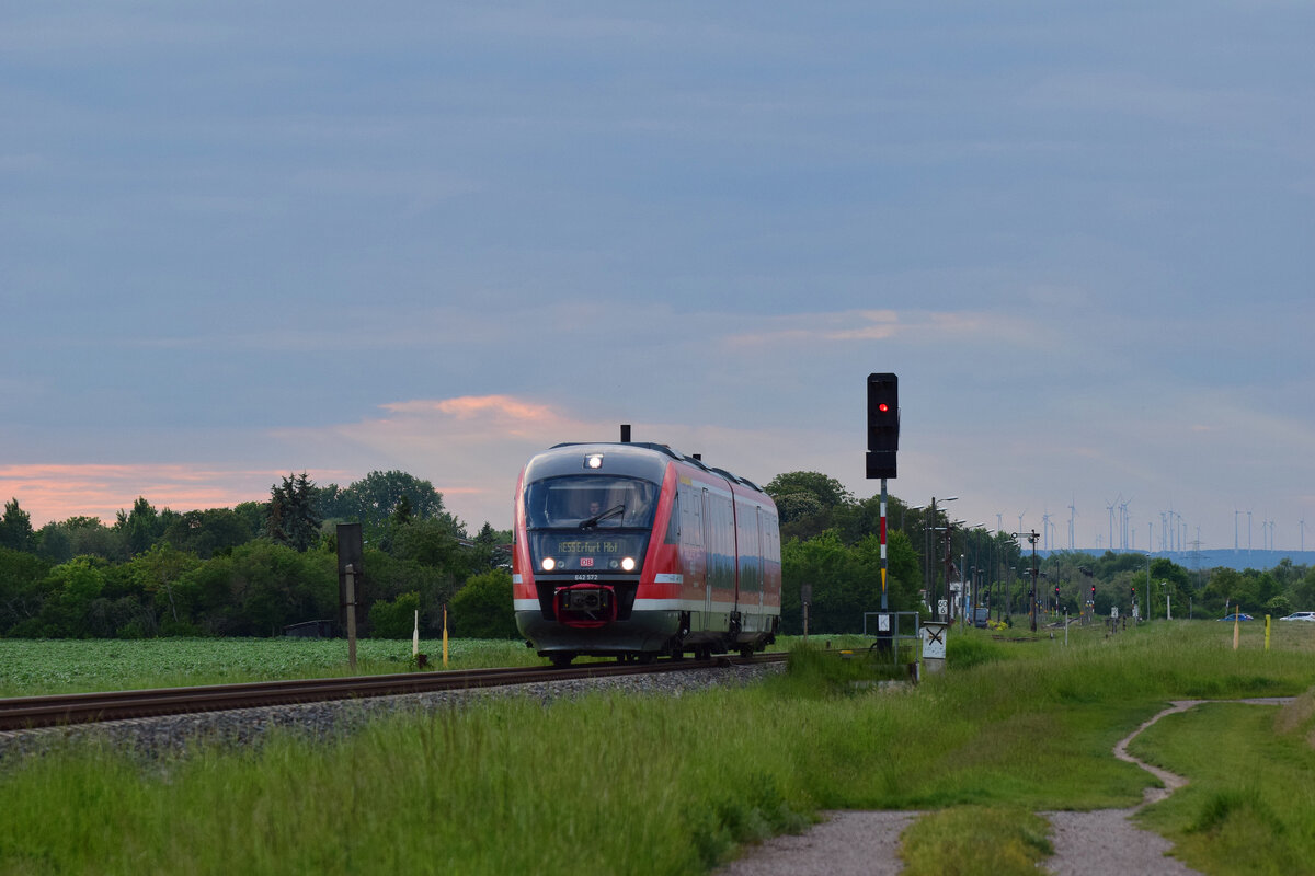 Rostock am 23. September 2020 steht auf Gleis 10 als RB 11 nach Tessin der Dieselriebzug 642 051.