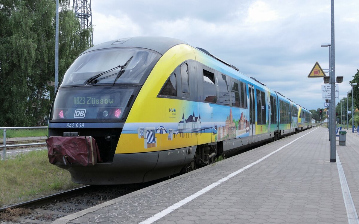 DB Regio AG- Desiro 642 039 & 642 539 - ‚, MV tut gut'', hier als RB23, kurz vor seiner Abfahrt Richtung Züssow. Zinnowitz, /Usedom im Mai 2024. (RB 23)
