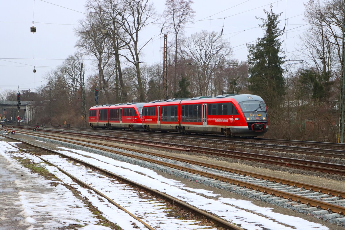 DB Regio VT 642 615 am 27.01.2026a als RB80 Marktbreit - Würzburg auf dem Gegengleis als  Falschfahrer  bei der Einfahrt in den Zielbahnhof. Das Richtungsgleis Würzburg ist zum Zeitpunkt der Aufnahme wegen Bauarbeiten zwischen Abzweig Würzburg Heidingsfeld und Würzburg Hbf gesperrt.