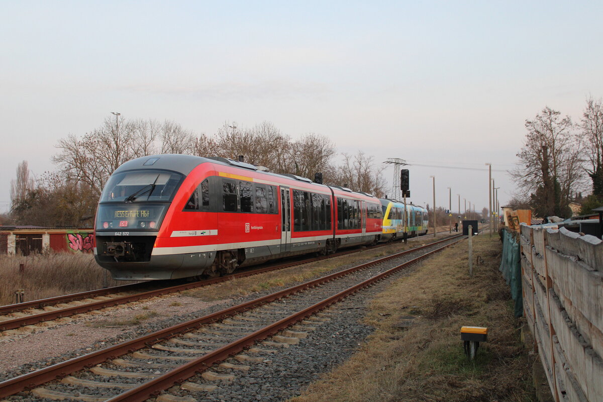 Aufgrund des Skispringens in Willingen kam es am 31.01.2026 im gesamten Netz der Kurhessenbahn kam es zu geänderten Fahrtverläufen und Fahrzeugeinsätzen. So wurde die RB4 von Kassel nach Korbach bis Marburg durchgebunden. 642 182 war mit einen weiteren 642 und hat als RB 23019 nach Marburg gerade den Bahnhof in Volkmarsen verlassen.