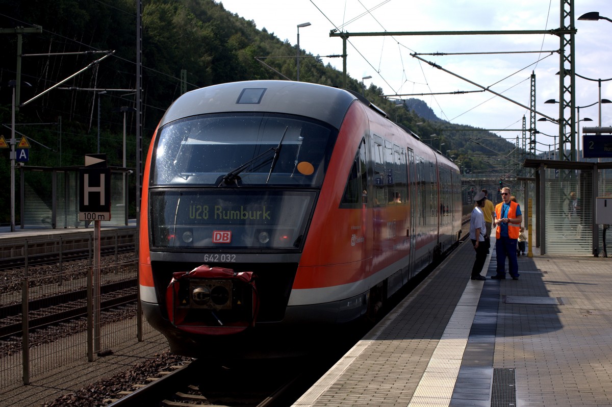 642 032 als U28 nach Rumburk über Sebnitz - Dolni Poustevna im Bahnhof von Bad Schandau.16.08.2014 15:18 Uhr.