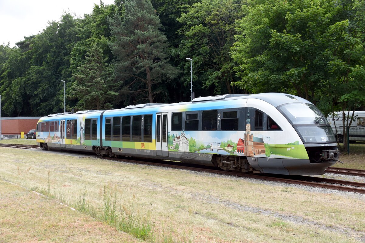 HERINGSDORF (Landkreis Vorpommern-Greifswald), 07.07.2025, 642 540 der Usedomer Bäderbahn abgestellt auf dem Gelände des Bahnhofs Seebad Heringsdorf