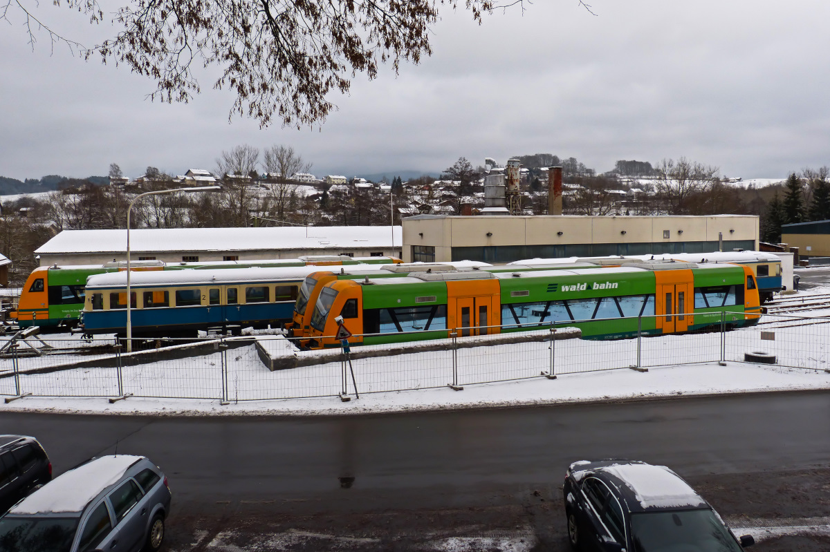 Waldbahn VT18 stand am 08.04.2017 etwas unvollständig in Viechtach