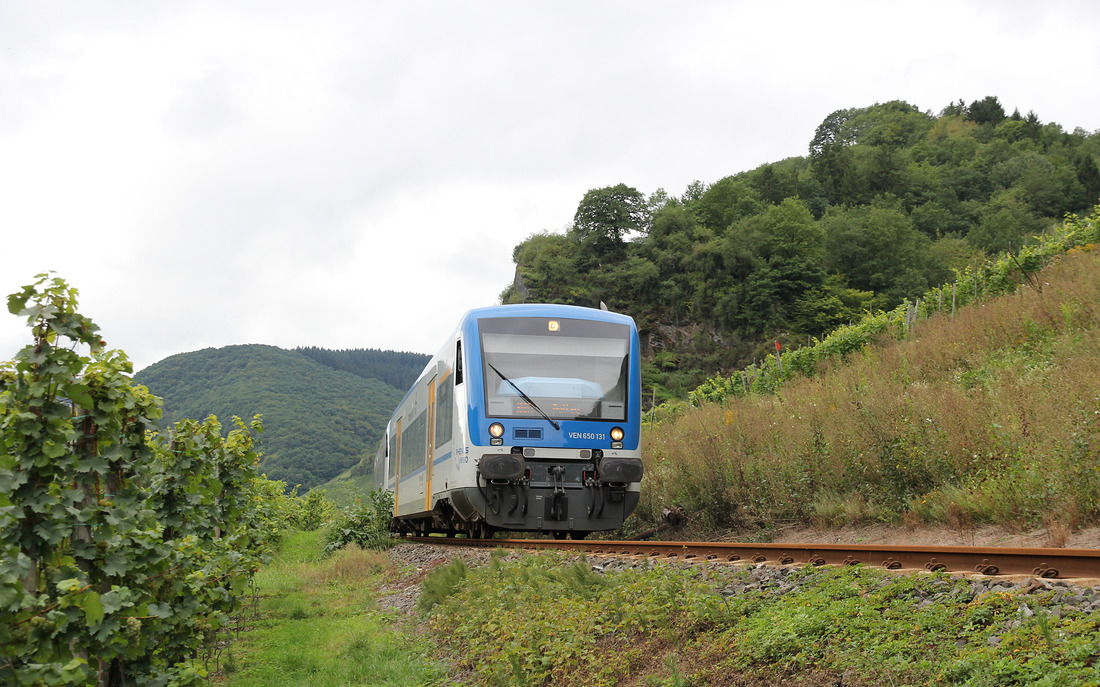 Ein Regioshuttle ist unterwegs nach Bullay. Aufgenommen vom oberen Ortsrand von Reil.