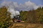 Hier sind sie bei Kornbach zu sehen und erklimmen die Steigung nach Reuth, dem Scheitelpunkt der Strecke.