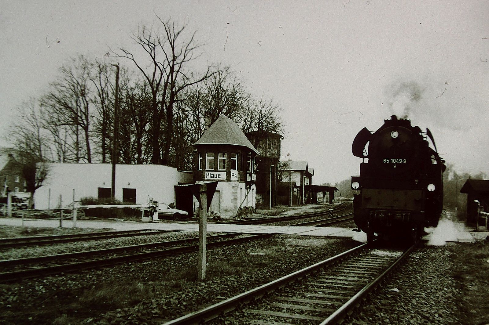 078 (Plandampf im Thüringer Wald Rennsteig & Lobenstein 18.- 21. März 1993 ) Abfahrt im Bahnhof Plaue 65 1049-9 mit Üg 67513 Arnstadt-Ilmenau aufnahme S-w Agfa Iso 100 mit Kamera Minolta X-300 Jan Stein