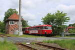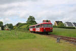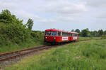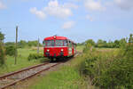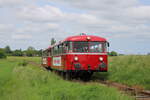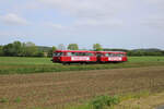 EVB 796 826-5 + 998 915-2 + 796 828-1 dieseln am Morgen des 26.05.2022 als Moorexpress von Bremervörde nach Bremen, hier bei Basdahl.