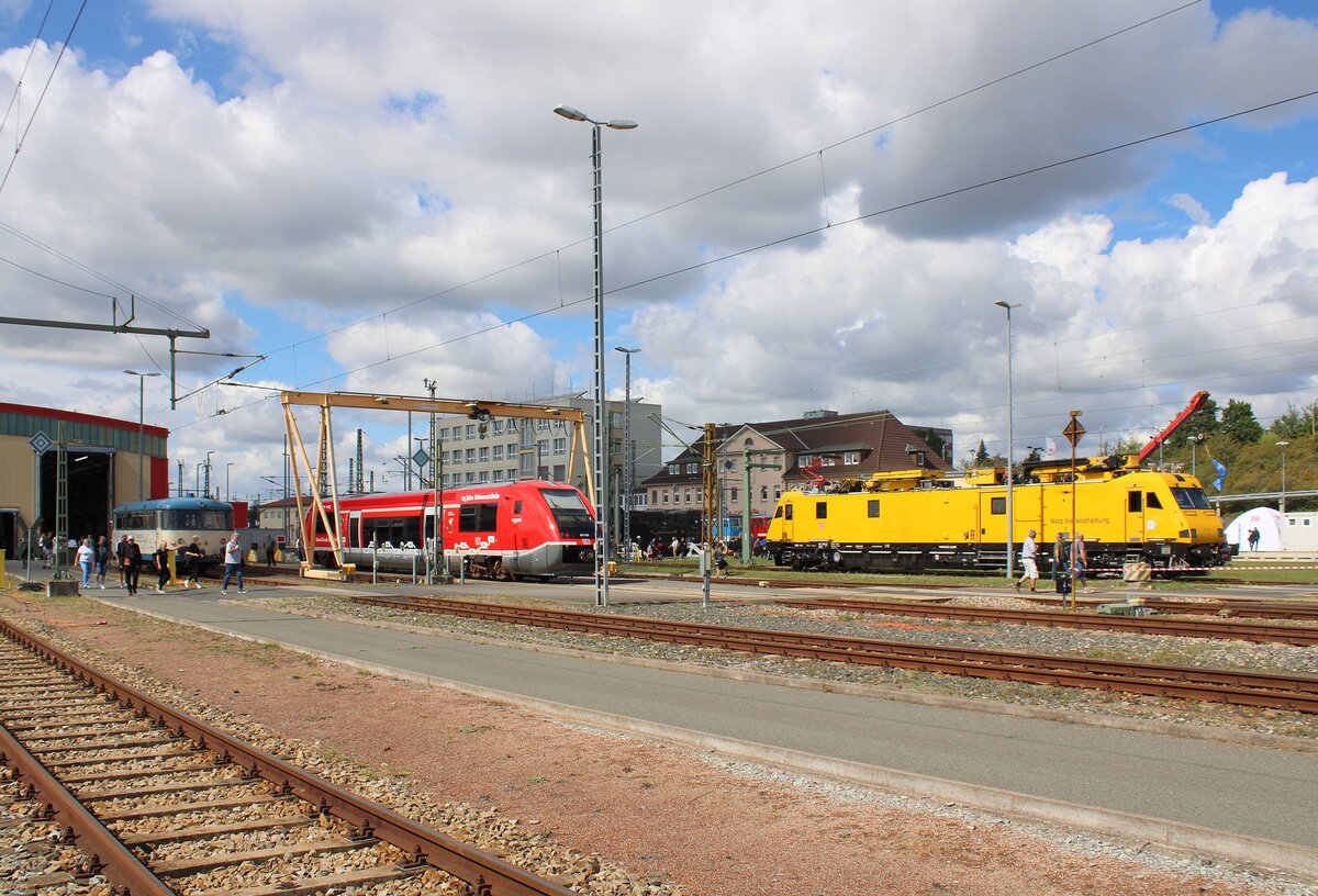 Am 30.08.2025 kam der WTB 798 592-1 zum 100. Geburtstag des Bw Erfurt als "Erfurt-Express" aus Gera Hbf ins DB Werk Erfurt.