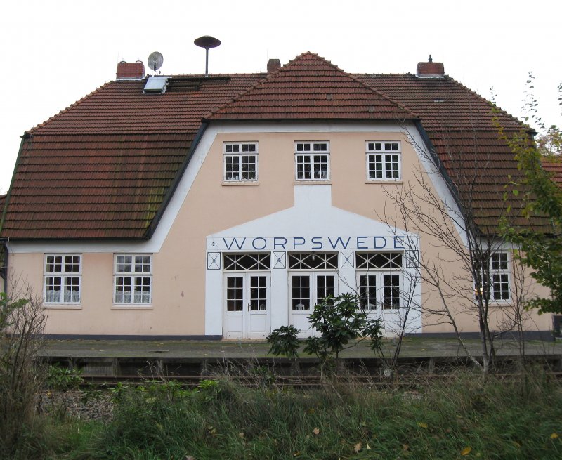Der Worpsweder Bahnhof. Es verkehrt hier zur Zeit leider nur noch der "Moorexpress" der EVB. In den Sommermonaten regelmäßig, im Winter nur zu besonderen Anlässen oder mit Charterfahrten.