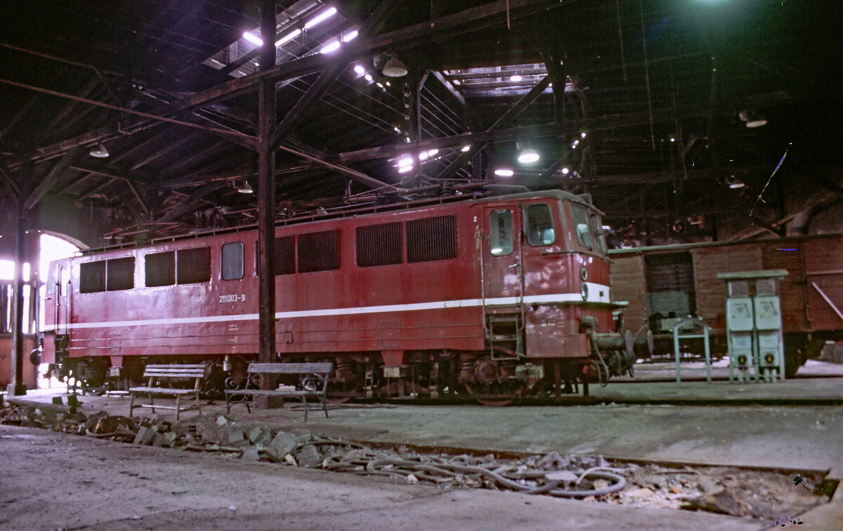 DR-Elektrolok 211 001 in ihrer letzten "dienstlichen" roten Lackierung am 28.05.2005 beim TEV Weimar.