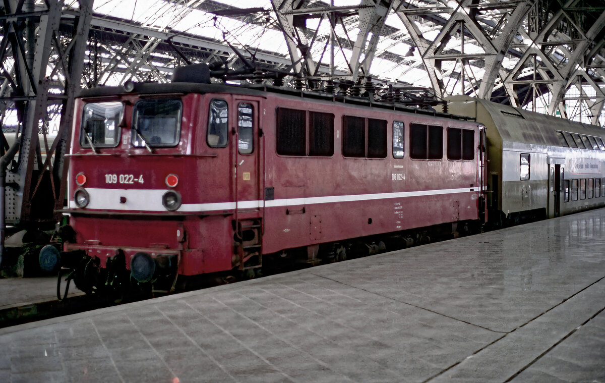 Im Hbf. Leipzig entstand am 14.08.1992 die Aufnahme der 109 022.