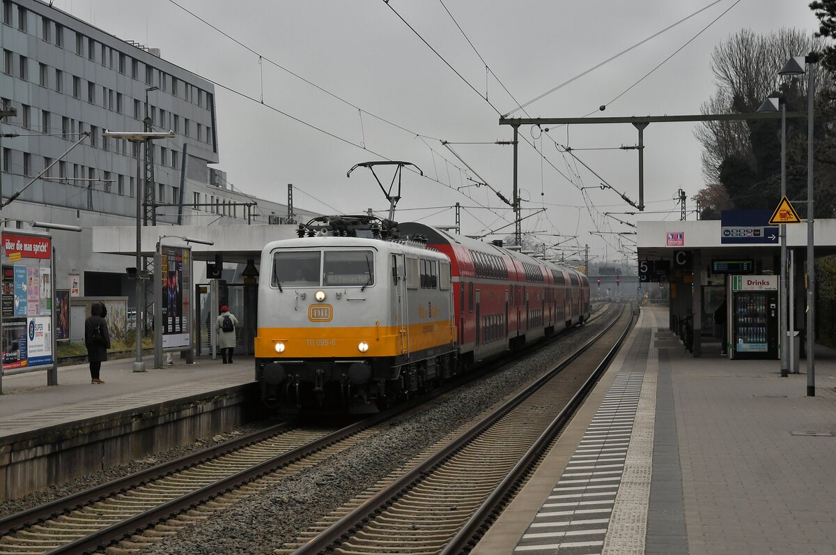 Die DB Gebrauchtzug 111 074 "Hilde" überführte am 22.05.2024 fünf Doppelstockwaggons als Lr-D 73008 von Düsseldorf-Abstellbahnhof nach Nürnberg Hbf, hier bei der Durchfahrt in Würzburg. Zwei der Wagen (D-DB 50 80 86-75 063-7 DBpbzfa und D-DB 50 80 26-75 143-0 DBpza) sind in den Farben des ehemaligen Touristik-Zuges lackiert worden.