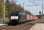 112 101-1 als RE 4 in Richtung Jüterbog am 27. April 2025 bei Thyrow auf der Anhalter Bahn.