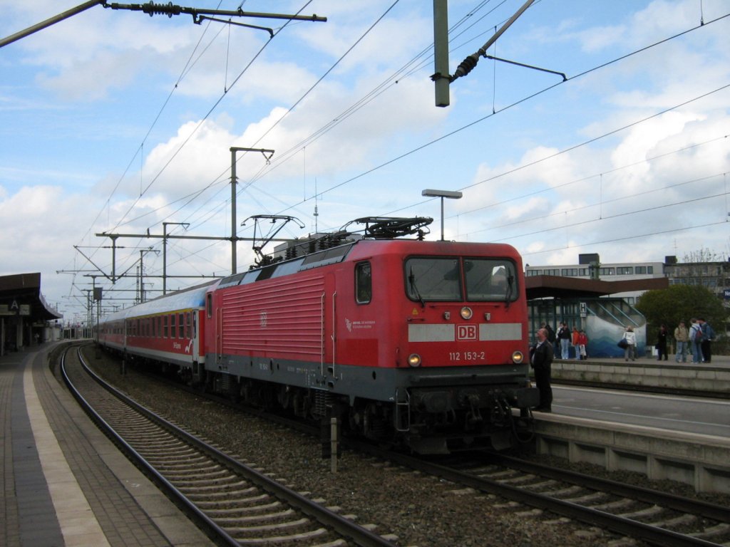 112 153-2 mit dem Schleswig-Holstein-Express von Padborg über Flensburg nach Hamburg-Hauptbahnhof beim fahrplanmäßigen Halt im Bahnhof Neumünster am 19.04.2007
