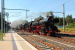 Die 112 107-8 mit dem RE 5 nach Rostock Hbf bei der Durchfahrt in Nassenheide am 13.10.2013.