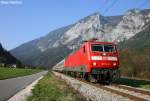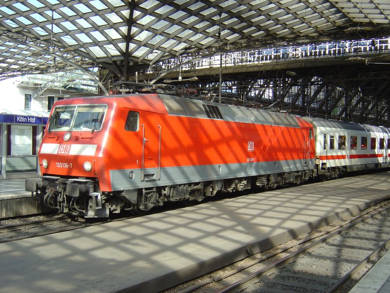 120 136-7 vor einem IC in Köln Hbf am 22.4.07