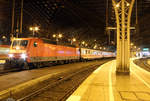 120 111-0 schiebt ihren Zug Richtung Abstellanlage. Nürnberg 20.01.2019