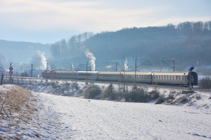 Ein einziger IC-Wagen zierte am 14. Januar IC 79693 auf seiner Fahrt nach Ulm. Gleich hat der Ersatz-ICE Urspring erreicht.