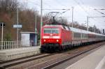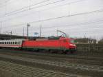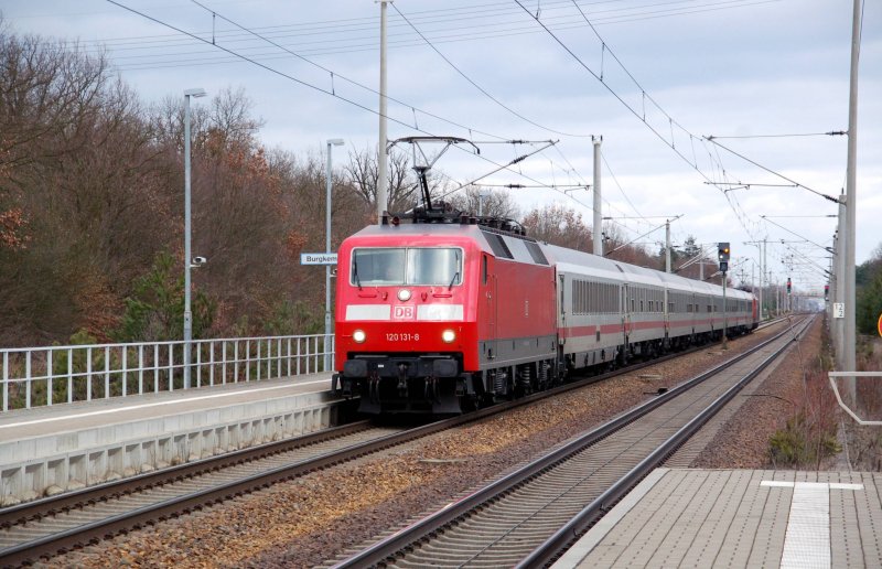 120 131 zieht am 08.02.09 einen Ersatz-IC von Berlin kommend durch Burgkemnitz...