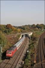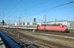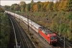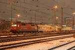 120 118 hält am 20.12.2011 mit der Direktverbindung Moskau/Paris mit russischem Wagenpark (Russion Rail) im Hbf. Mannheim.