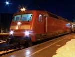 120 124-3 mit IC 2246 von Leipzig nach München in Magdeburg Hbf. Am anderen Ende des Zuges hing eine 101er. Fotografiert am 12.02.2010.