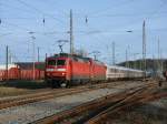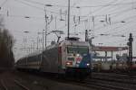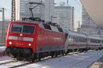 120 118 hält am 20.12.2011 mit der Direktverbindung Moskau/Paris mit russischem Wagenpark (Russion Rail) im Hbf. Mannheim.
