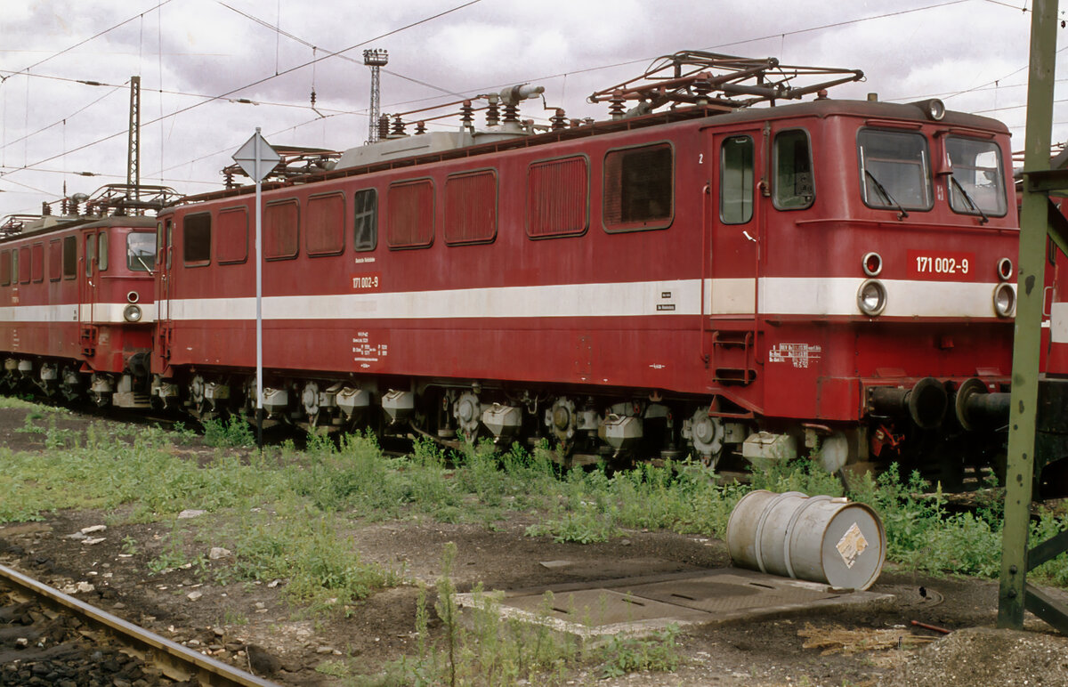 171 001, bereits mit der DB-Nummer, am 15.08.1992 im Bw.