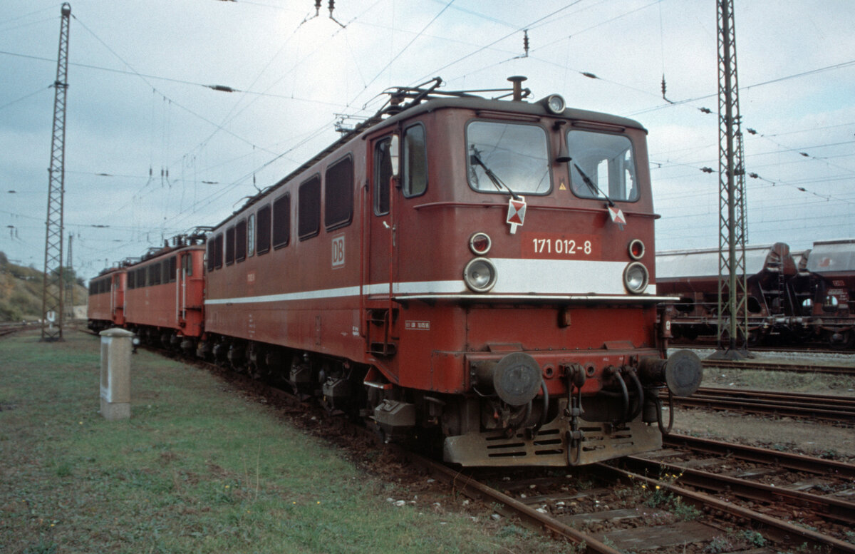 171 012 und zwei weiter Tfz. dieser Baureihe am 03.11.2001 im Bw. Blankenburg.