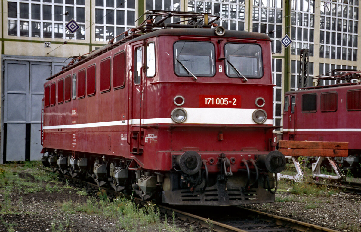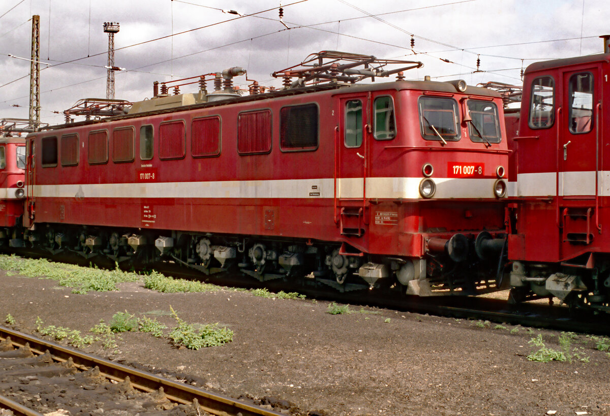 171012 fährt am 20.8.1996 um 10.35 Uhr auf der Rübelandbahn mit dem RB aus Königshütte in Elbingerode ein.