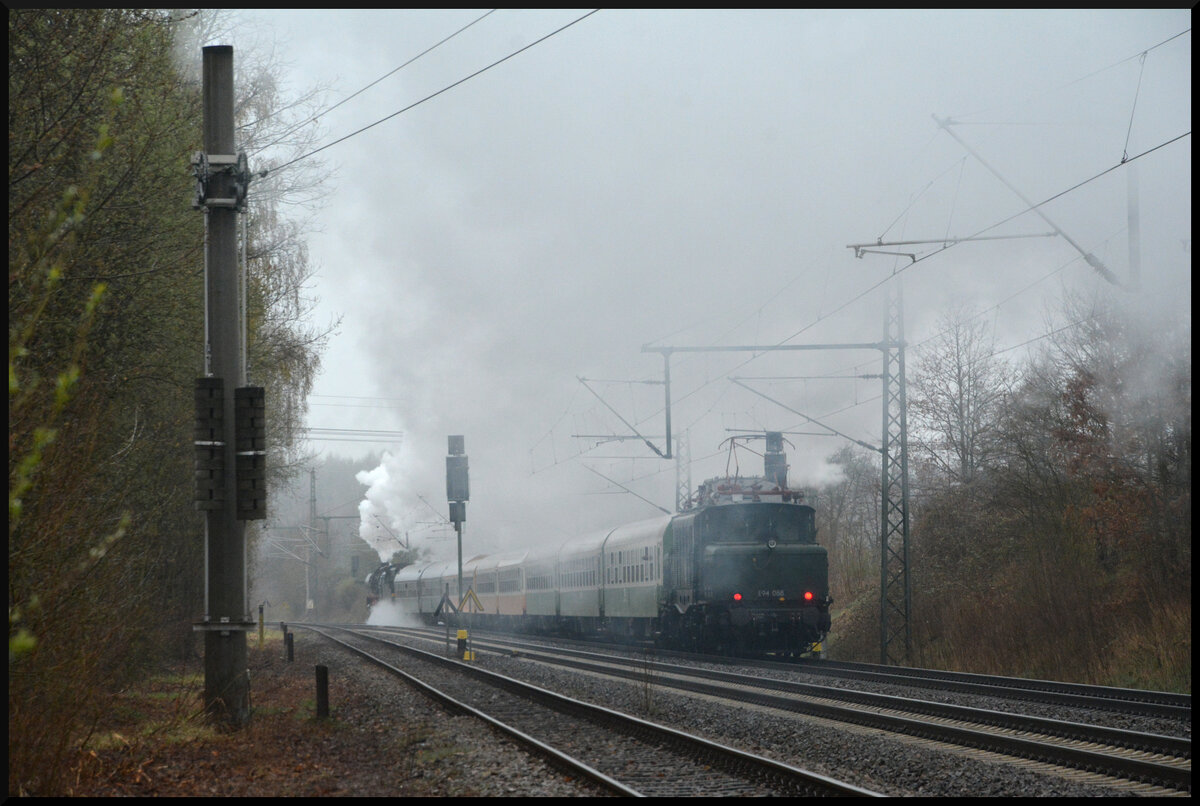 IGE 41 1144 & EZW 94 088 mit dem Sonderzug DZ 26321 Dresden - Glauchau/Sachs. am 10.04.2026 in Niederwiesa. Der Zug verkehrte anlässlich des Dresdner Dampfloktreffens als Fanfahrt zwei Mal über die Sachsenmagistrale. Ursprünglich sollte das Krokodil nur bis Freiberg/Sachs. den Zug nachschieben, warum die Maschine bis Glauchau/Sachs. mitlief entzieht sich meiner Kenntnis.
