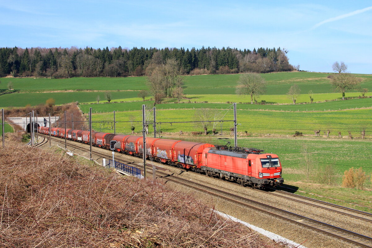 Die etwas dreckige 193 821 mit Holzzug von Rostock-Bramow nach Stendal-Niedergörne via Borstel Kr. Stendal bei der Durchfahrt im Haltepunkt Rostock-Holbeinplatz.06.07.2018