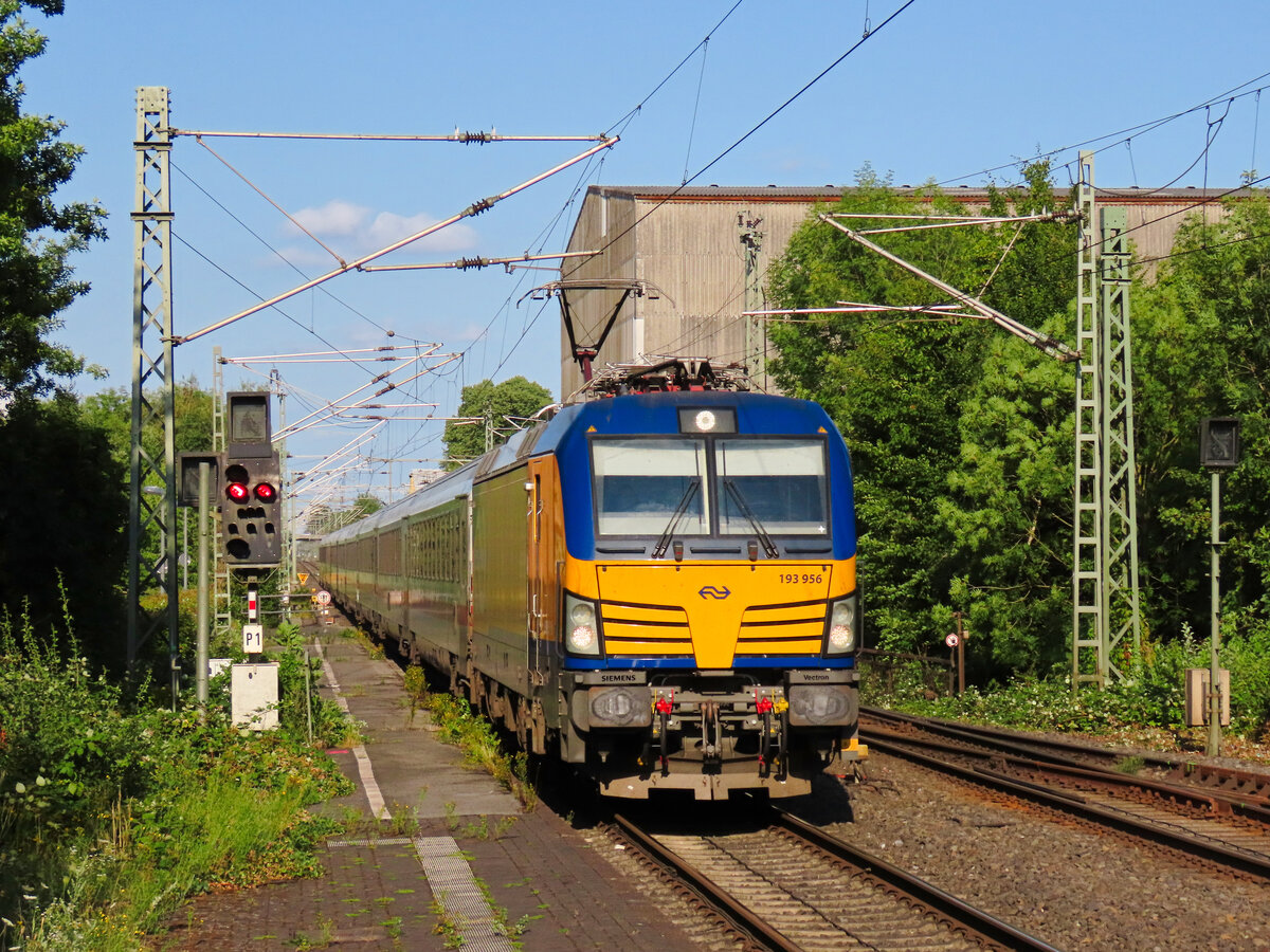 Während der Umleitung der Amsterdam IC Züge über Altenbeken fahren die Züge im Gegensatz zu anderen Umleitungen über Hamm diesmal ohne Halt durch. Hier ist es 193 935 mit einem IC nach Berlin, der ohne Halt über Soest und Altenbeken bis Hannover durchfährt. Juni 2025