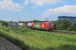 Am Abend des 08.08.21 war 193 318 mit dem Walther-KLV von Rostock bis Verona unterwegs. Im schönen Abendlicht passiert der Backbone Gräfenhainichen Richtung Bitterfeld.