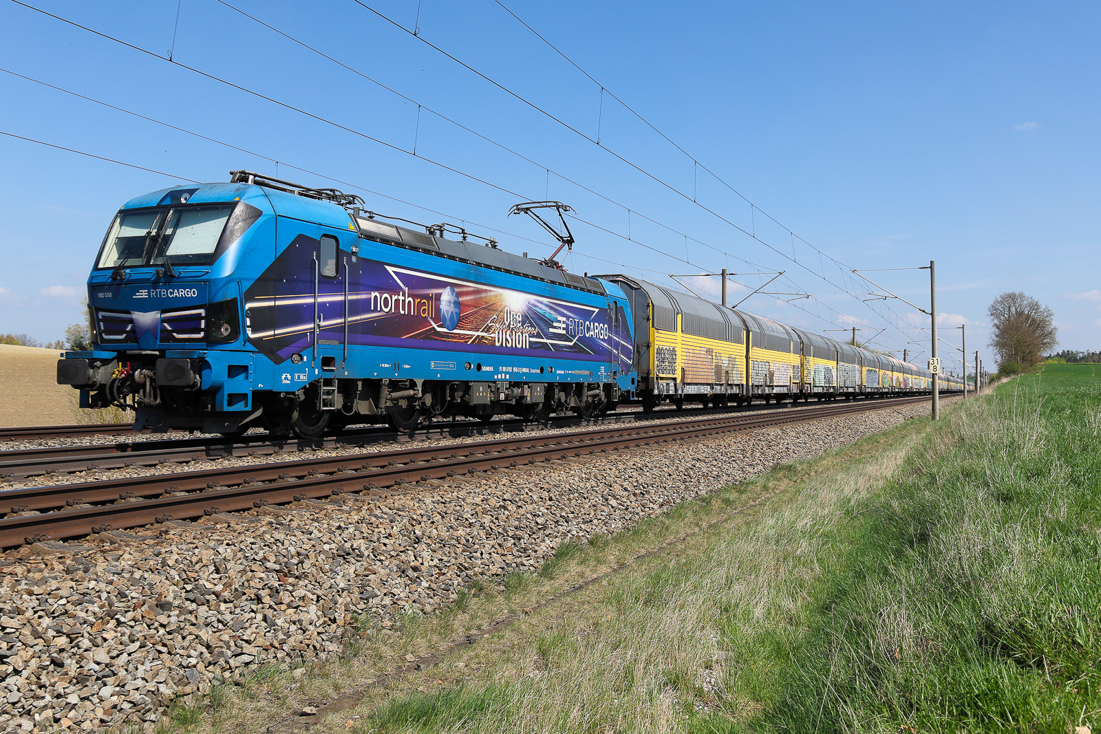 RTB Bemalung auf 192 014 mit vielen schönen BMW´s, sicher aus Dingolfing Richtung München am 16.04.26 bei Feldmoching.