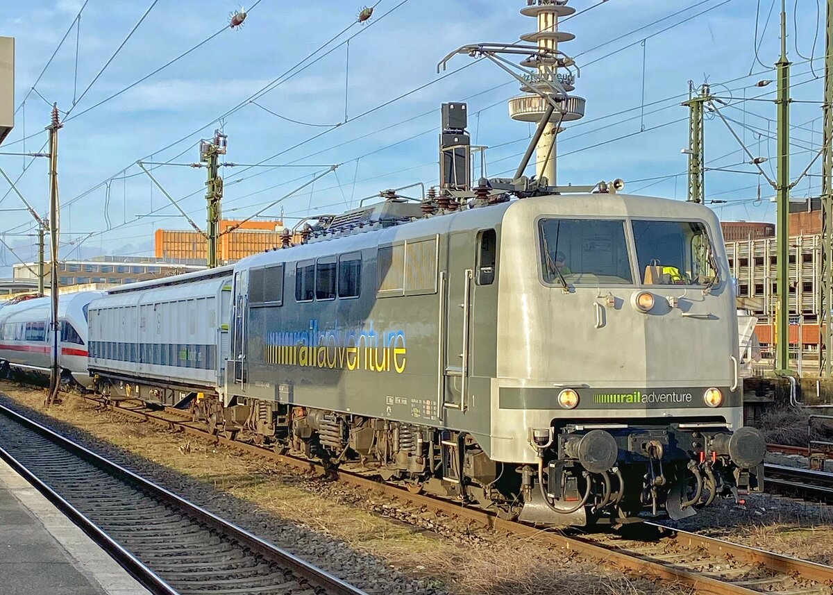 Am 17.12.2023 ist die etwas dreckige 111 082-4 der RADVE am Hbf Hannover mit einem ICE T im Schlepptau anzutreffen.