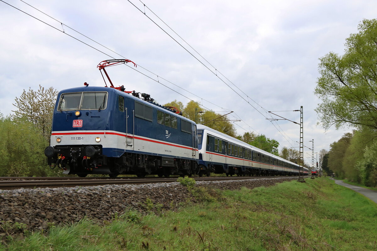 TRI 111 130 mit einem Fußballsonderzug aus Münster zur 2. Liga Partie gegen einen bekannten Fußballverein aus Gelsenkirchen am Vormittag des 19.4.26 in Sythen