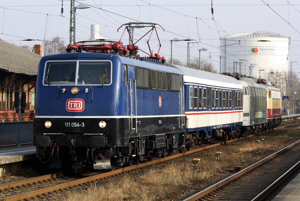 111 049-3 der GfF-Fahrzeugtechnik am 10.06.2025 um 11:39 Uhr in Fahrtrichtung Süd-Ost kurz vor dem Bahnübergang Porzer Ringstraße (Köln-Gremberg, 50.914009, 7.019073).