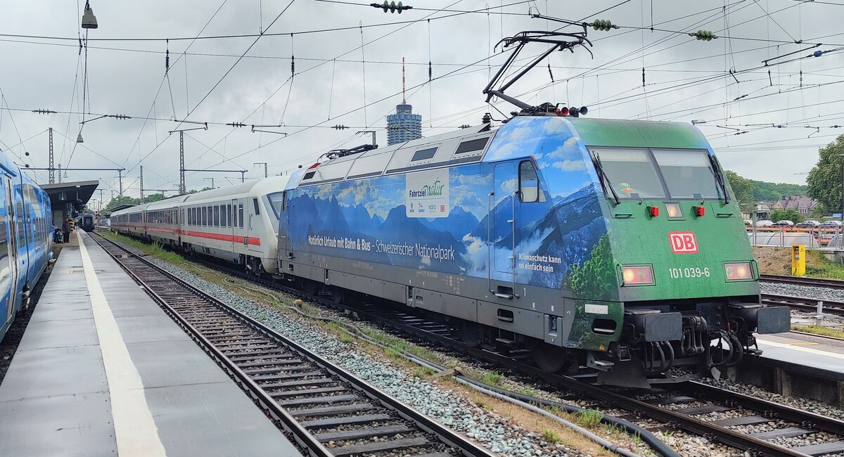 Am 04.05.2025 nahm ich den Rangiervorgang vom IC 2082  Königssee  (Berchtesgaden - Hamburg) und dem IC 2082  Nebelhorn  (Oberstdorf - Hamburg) im Augsburger Hbf auf. Als Lok dient 101 039-6  Fahrtziel Natur - schweizerischer Nationalpark .