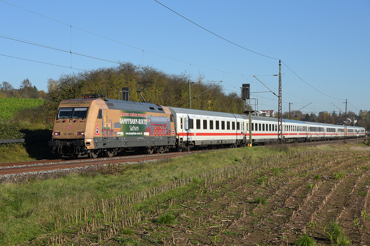 101 141-0 mit DB-Autozug in Fahrtrichtung Norden.