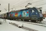 In neuem Kleid: 101 083-4 mit Werbung  Packendes Südafrika  in Bochum Hbf.. Ob die zu gewinnende Reise wohl eine Eisenbahnfahrt enthält?