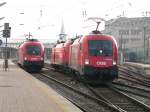 101 133-7 mit Werbeaufschrift für Äthiopien / Ethiopian Airlines wartend vor dem Haltesignal um dann in die Traktion Wien-West einfahren zu können, 17.2.2007