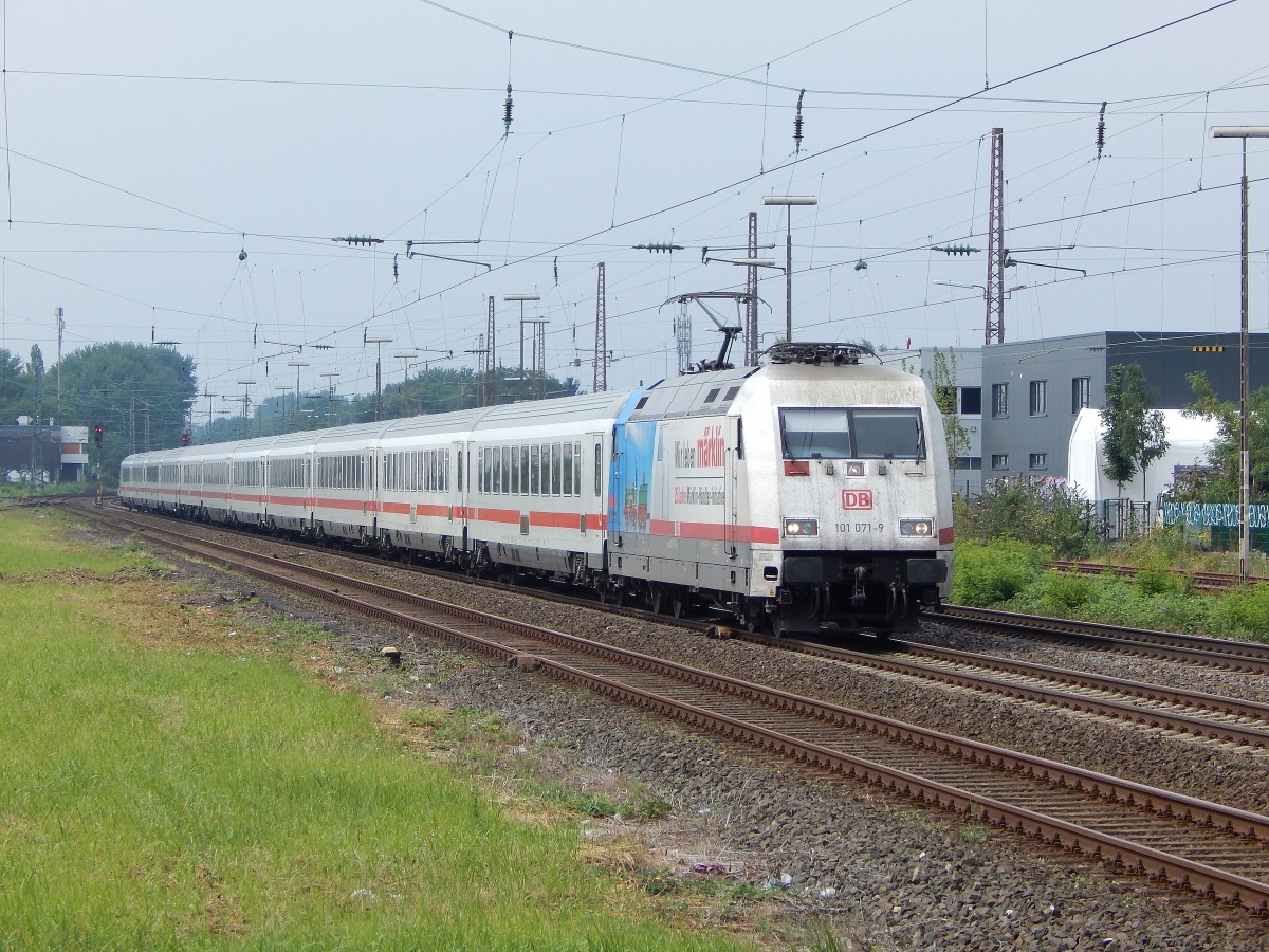 Ebenfalls umgeleitet wurde der IC mit 101 071-9 "Märklin". Hier zu sehen in Hilden in schönen Sonnenlicht.