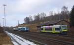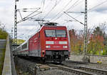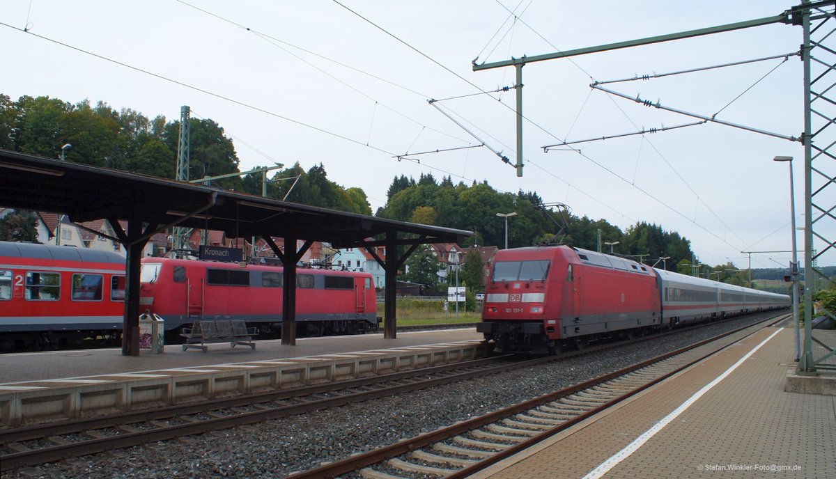 Bf Kronach am 21.09.2012. Die 111 mit N-Wagen hat grade Pause, während die 101 den besonderen Wagenzug Richtung Norden schiebt. In wenigen Kilometern beginnt der Anstieg übers Gebirge auf der Frankenwaldrampe....