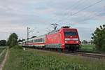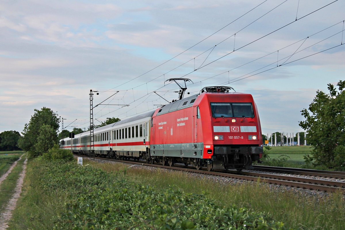 Als IC 2905 (Berlin Ostbahnhof - Basel Bad Bf) fuhr am Abend des 19.05.2020 die 101 057-8 als Ersatzzug für einen ausgefallen ICE südlich von Buggingen über die Rheintalbahn durchs Markgräflerland in Richtung Schweiz.