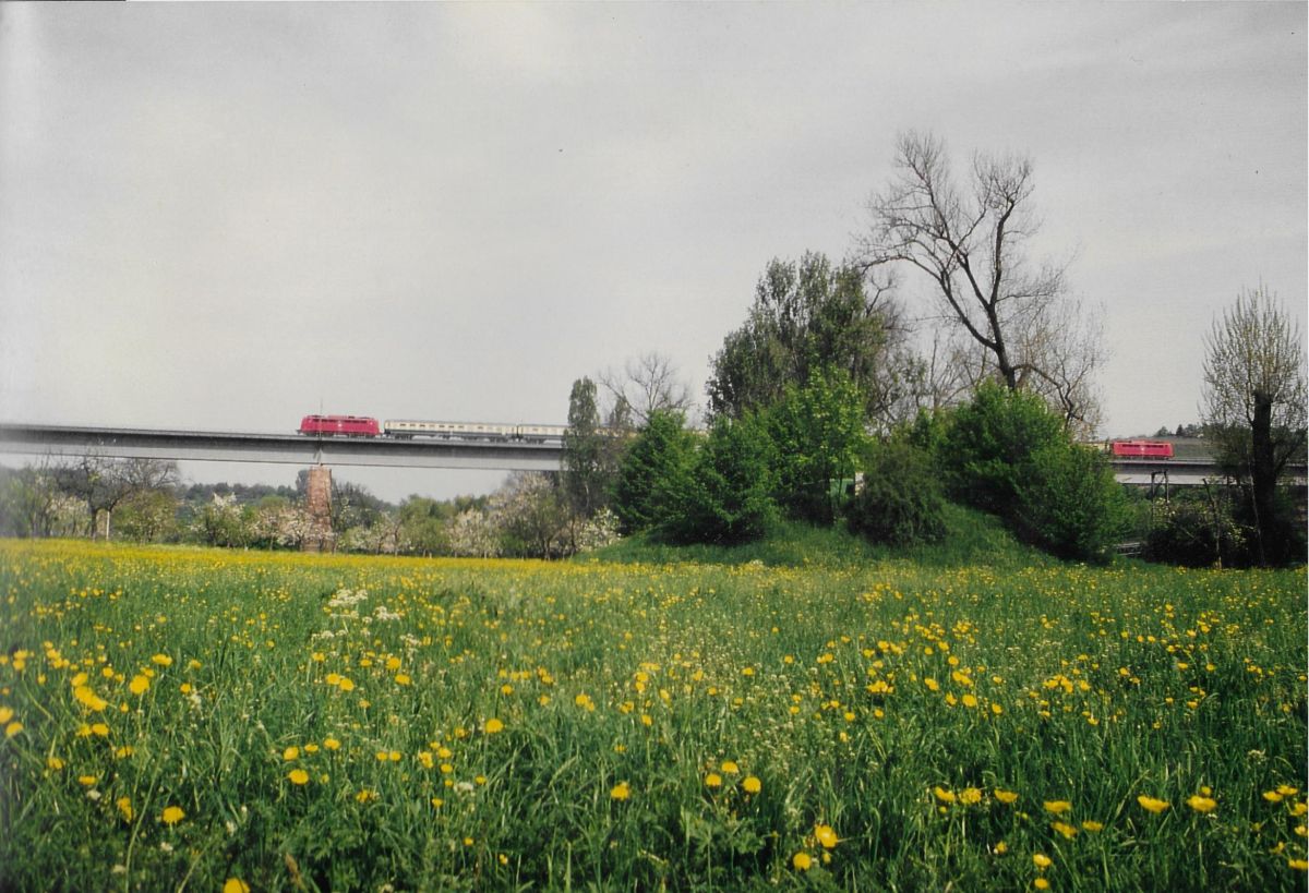 Sandwich aus 101 139-4 und 101 116-2 mit dem IC 2423 „UrlaubsExpress Mecklenburg-Vorpommern“ bei Nordbögge (21.03.2021)