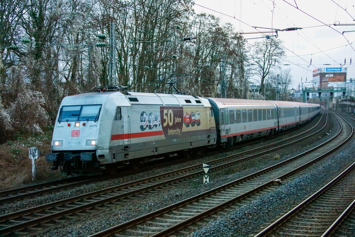 DB 101 065-1 mit IC119 in Wuppertal Hbf, Februar 2023.