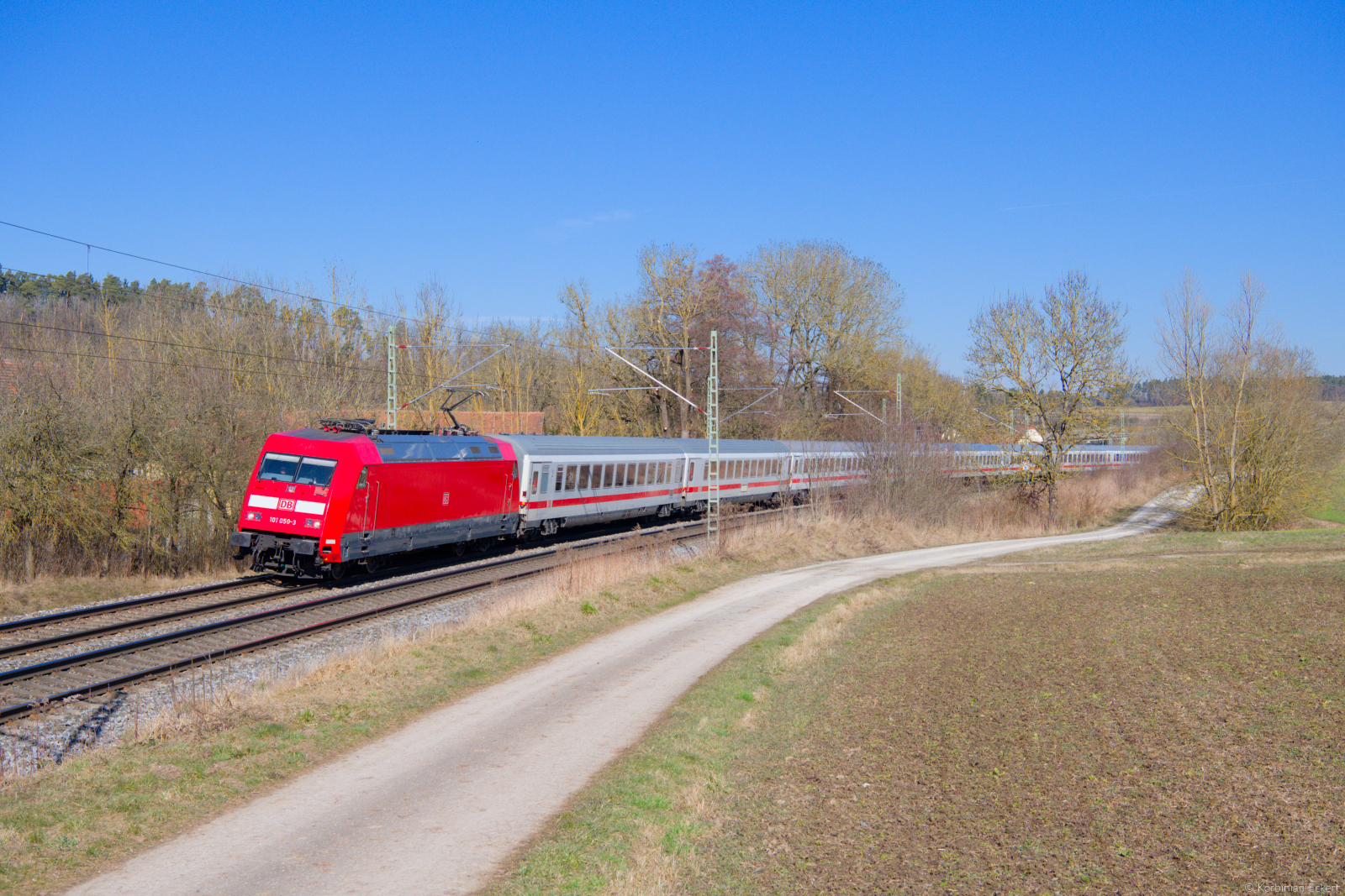 DB 101 009-9 mit dem IC 2155 von Köln Hbf nach Erfurt Hbf, am 22.03.2026 in Erfurt-Bischleben. Baustellenbedingt endete der Zug schon in Erfurt und nicht in Gera Hbf.