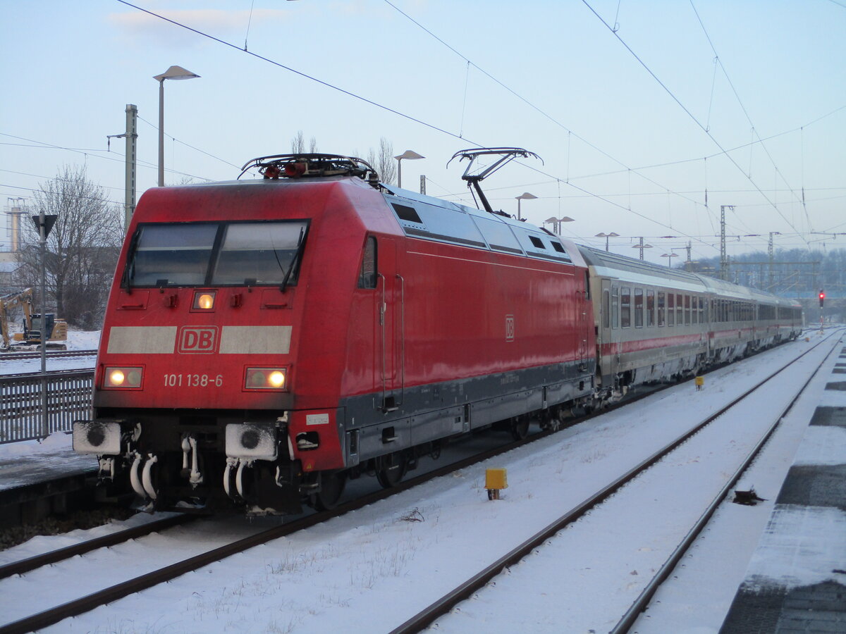 Bis zu ihrem ersten Zwischenhalt hatte es 101 138,am 06.Januar 2026,mit dem IC Binz-Hamburg Hbf,nach Bergen/Rügen pünktlich geschafft.